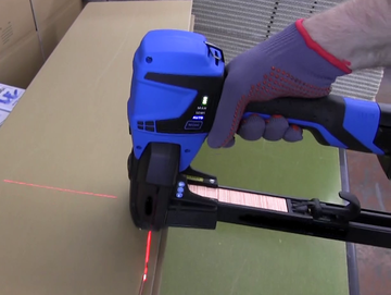 SEMI: Im halbautomatischen Modus können Sie den Auslöser gedrückt halten, während Sie das Heftgerät immer wieder leicht anheben und zur nächsten für eine Heftung vorgesehenen Stelle weiterbewegen. Der integrierte Sensor erkennt die Kartonoberfläche und setzt automatisch bei jeder Berührung die nächste Heftklammer.