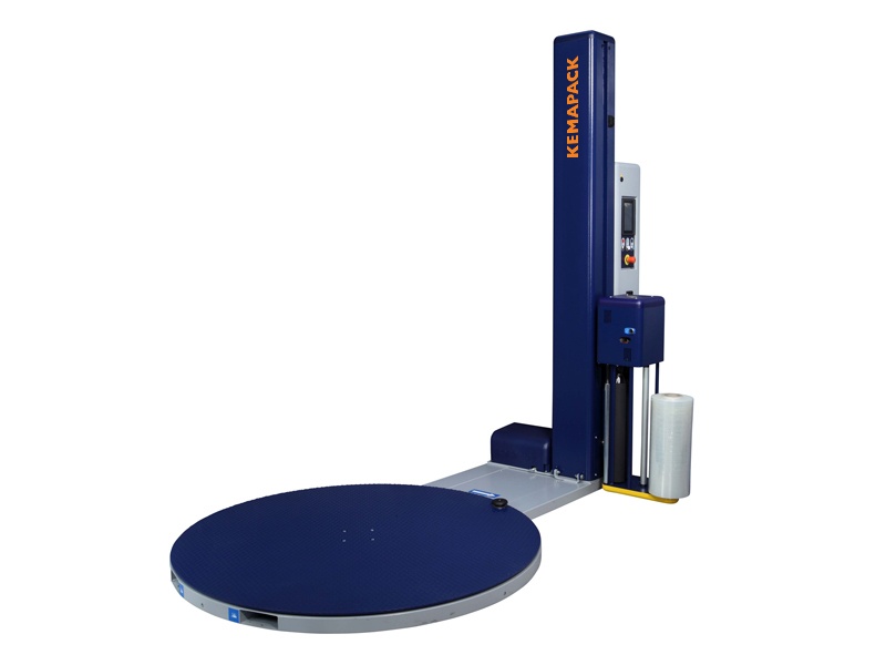 Die mechanische Konstruktion der R7 ist auf Langlebigkeit und Stabilität ausgelegt: Der röhrenförmige Stahlmast gewährleistet hohe Torsions- und Biegesteifigkeit, während der spezialgelagerte Drehteller mit Riffelblechauflage das Packgut sicher fixiert und ein Verrutschen während des Wickelprozesses verhindert.